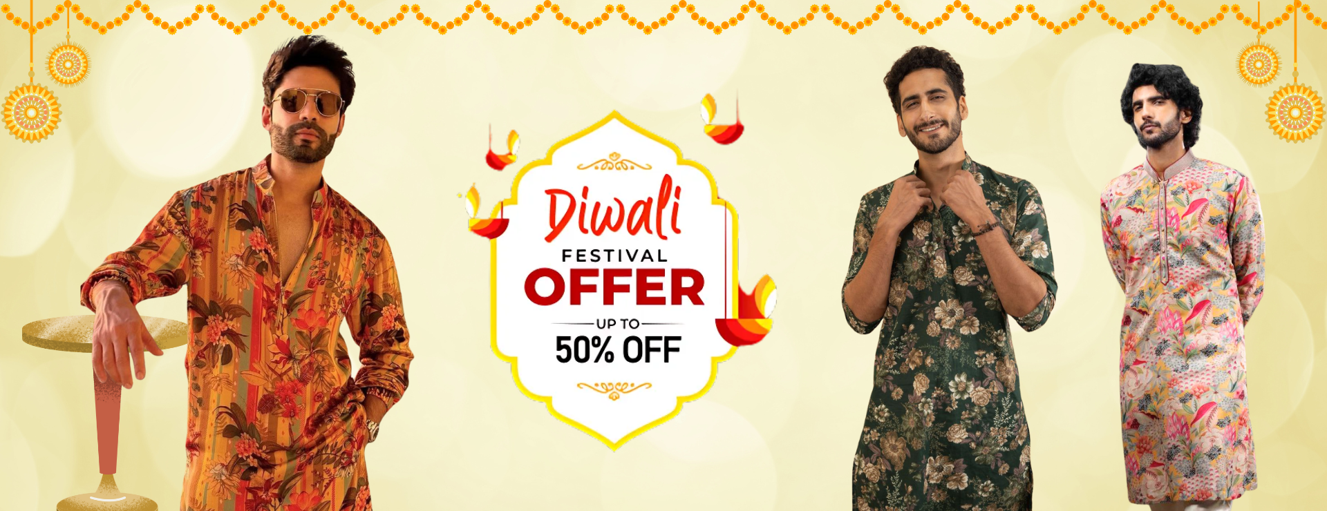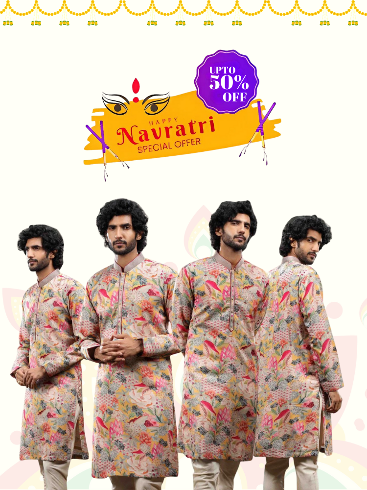 MIX FLOWER PRINTED WORK KURTA PAJAMA SET FOR MEN'S