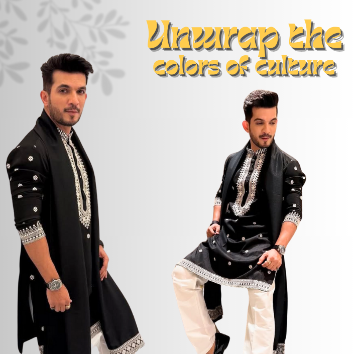 Black Embroidered SEQUIN WORK Men's Kurta with Pajama