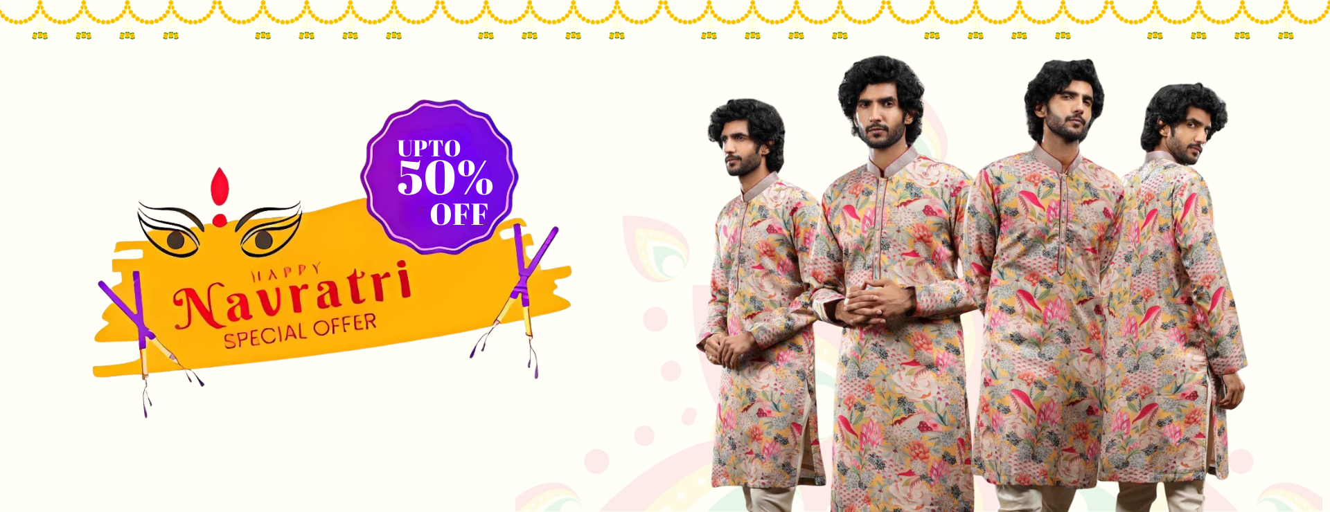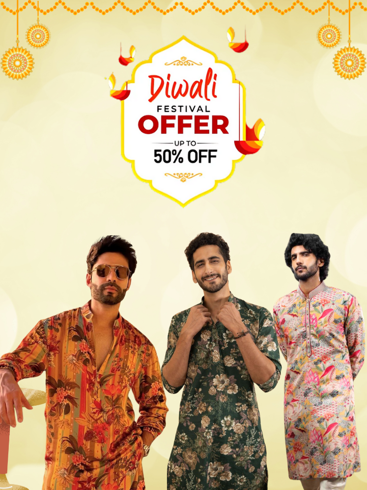 MIX FLOWER PRINTED WORK KURTA PAJAMA SET FOR MEN'S