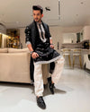 This Black Neck mix flower Cotton Embroidered Work Men's Kurta with Pajama Is Created by parvarish KURTA ,This Hand-stitched Kurta Is Made of 100% Pure Cotton Fabric With Having embroidered work Over It. Our Attractive embroidery Add More Charm to Your Look, Wear This at Any Time Because the Fabric Is So Smooth to Skin That You Will Love It.